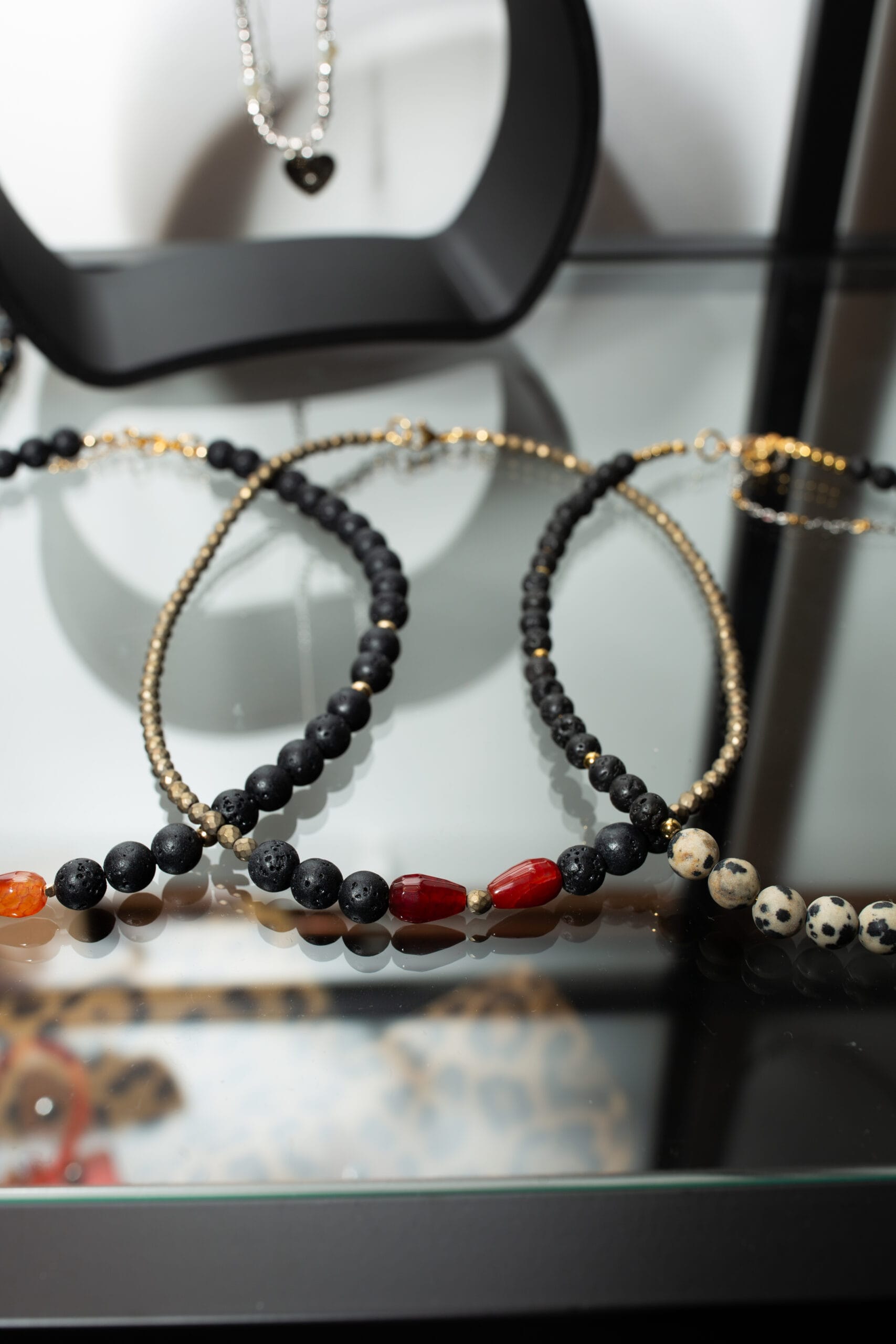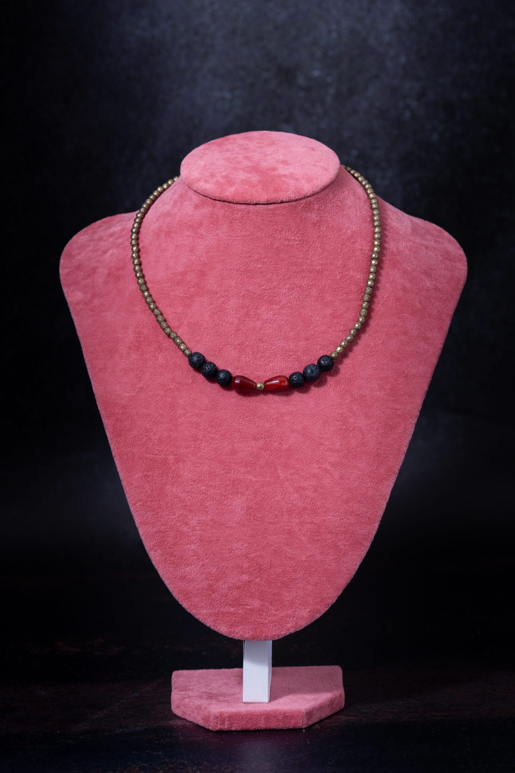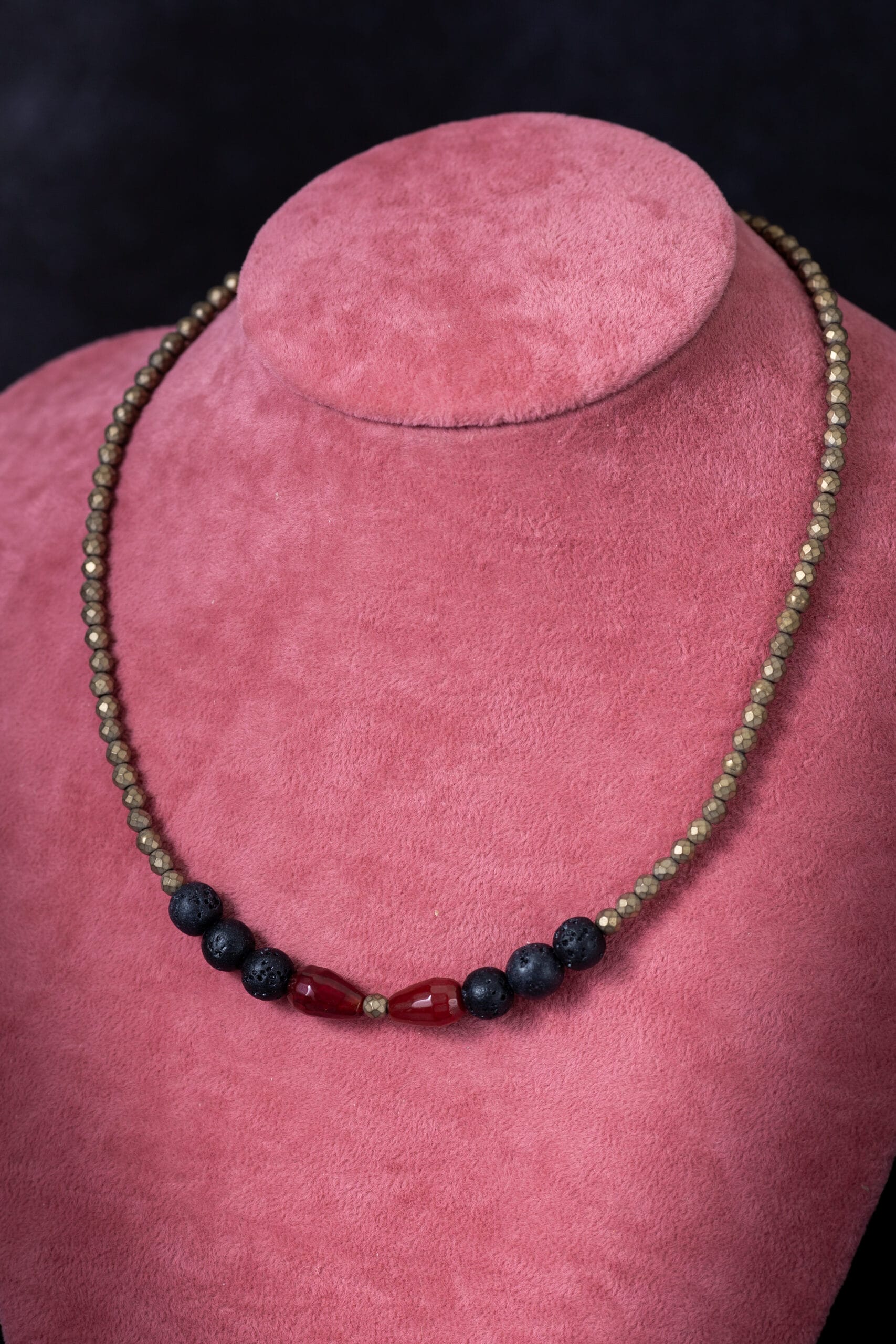 Ogrlica od lava kamena, ahata i hematita