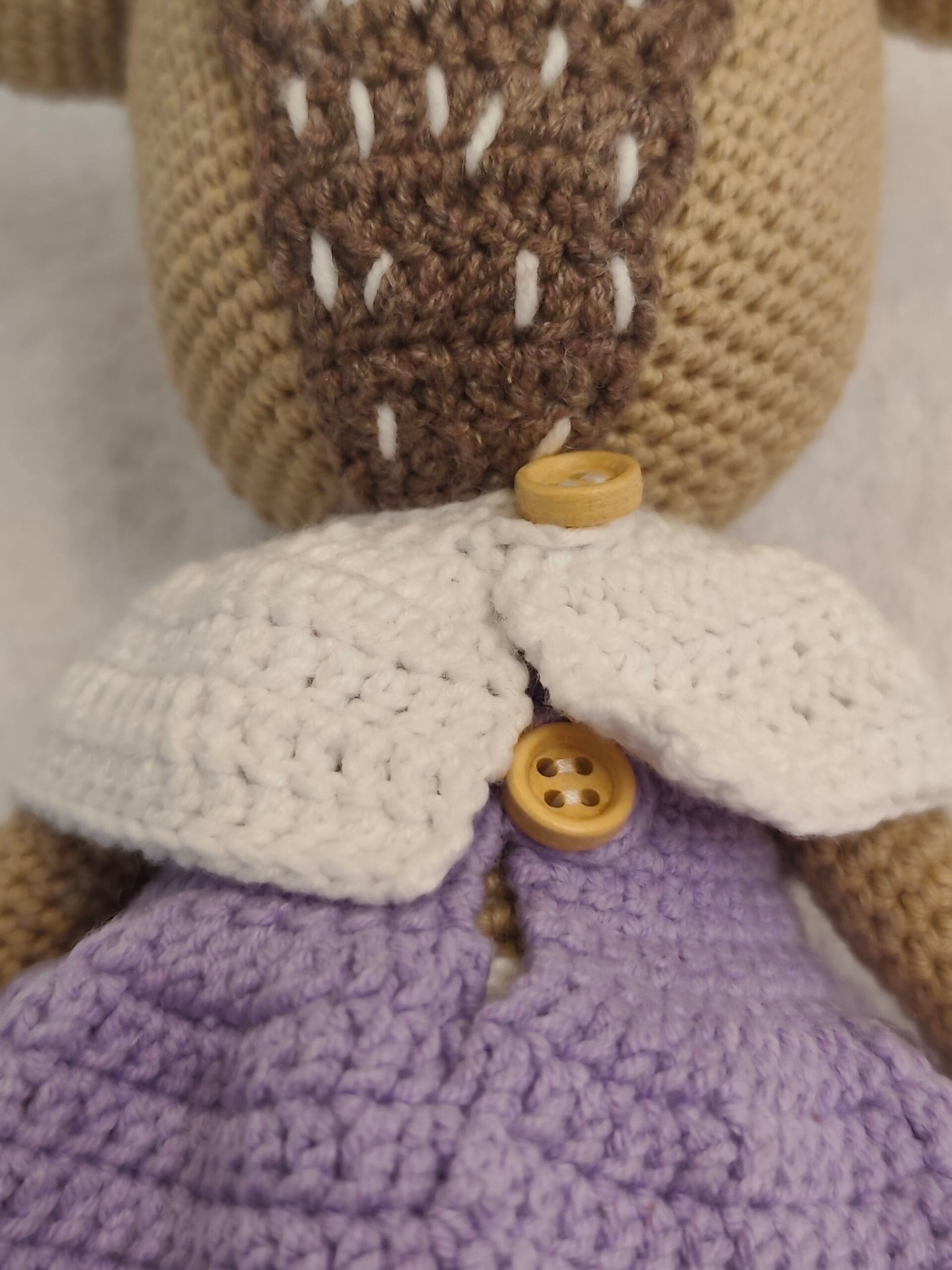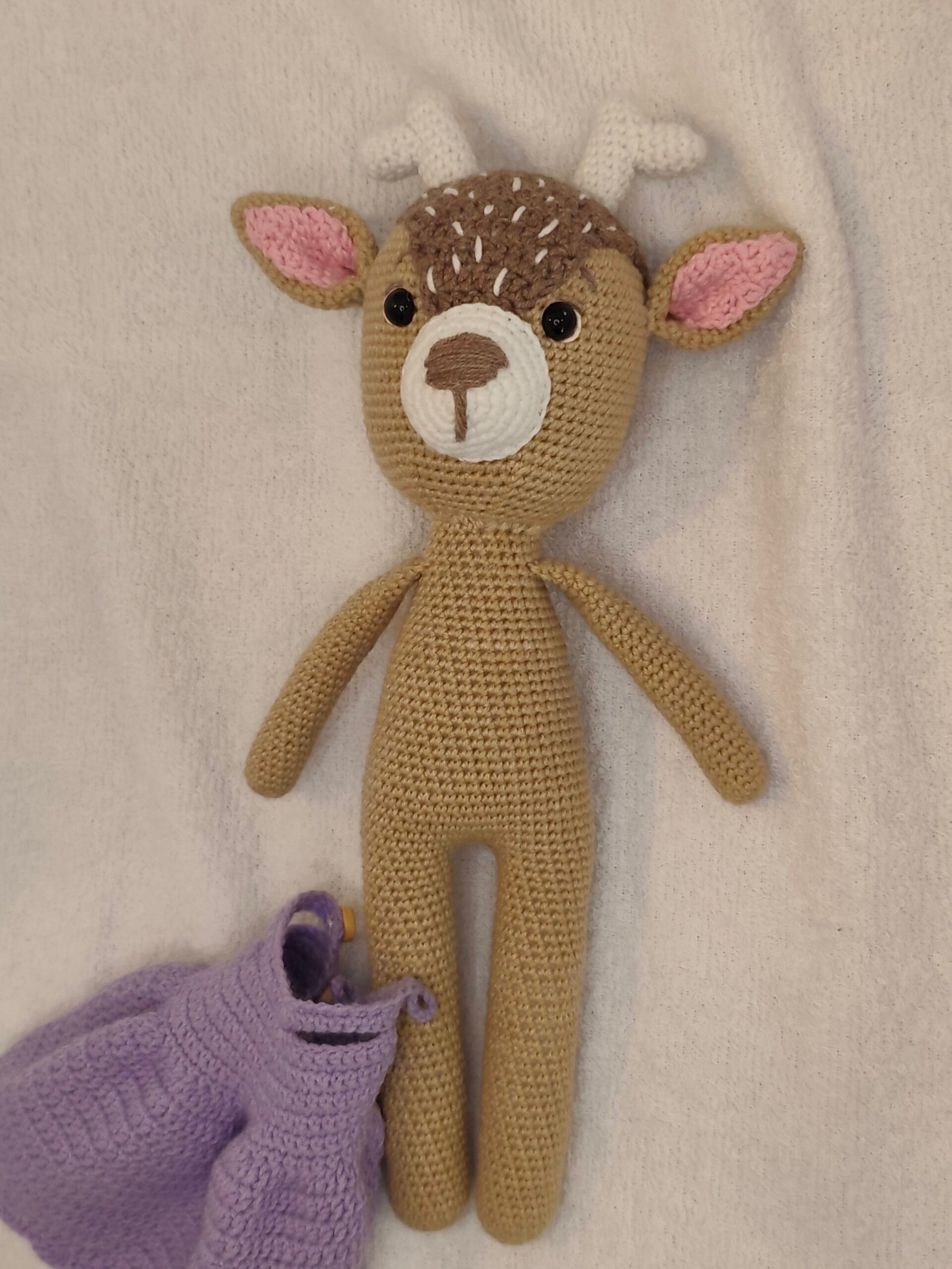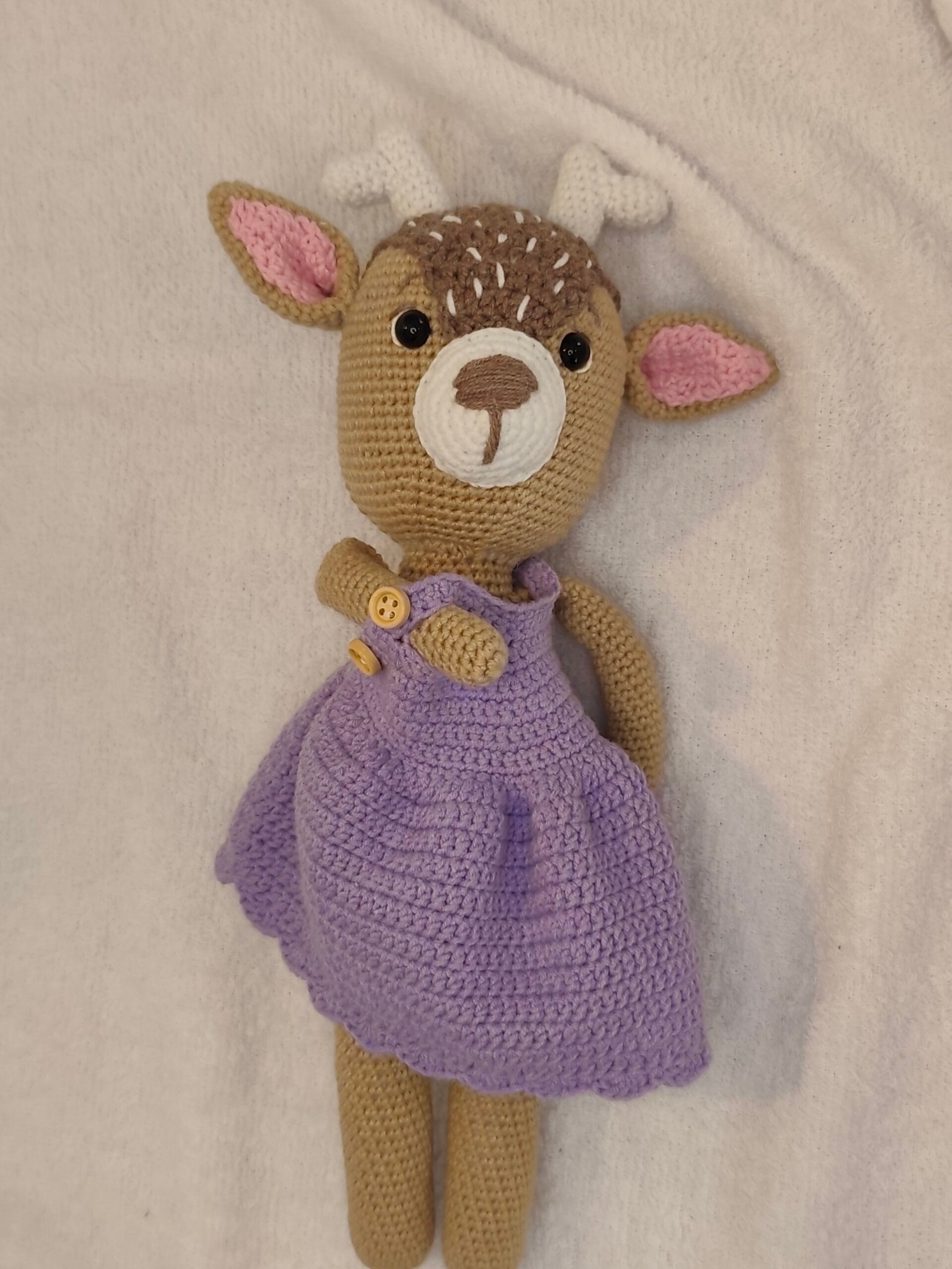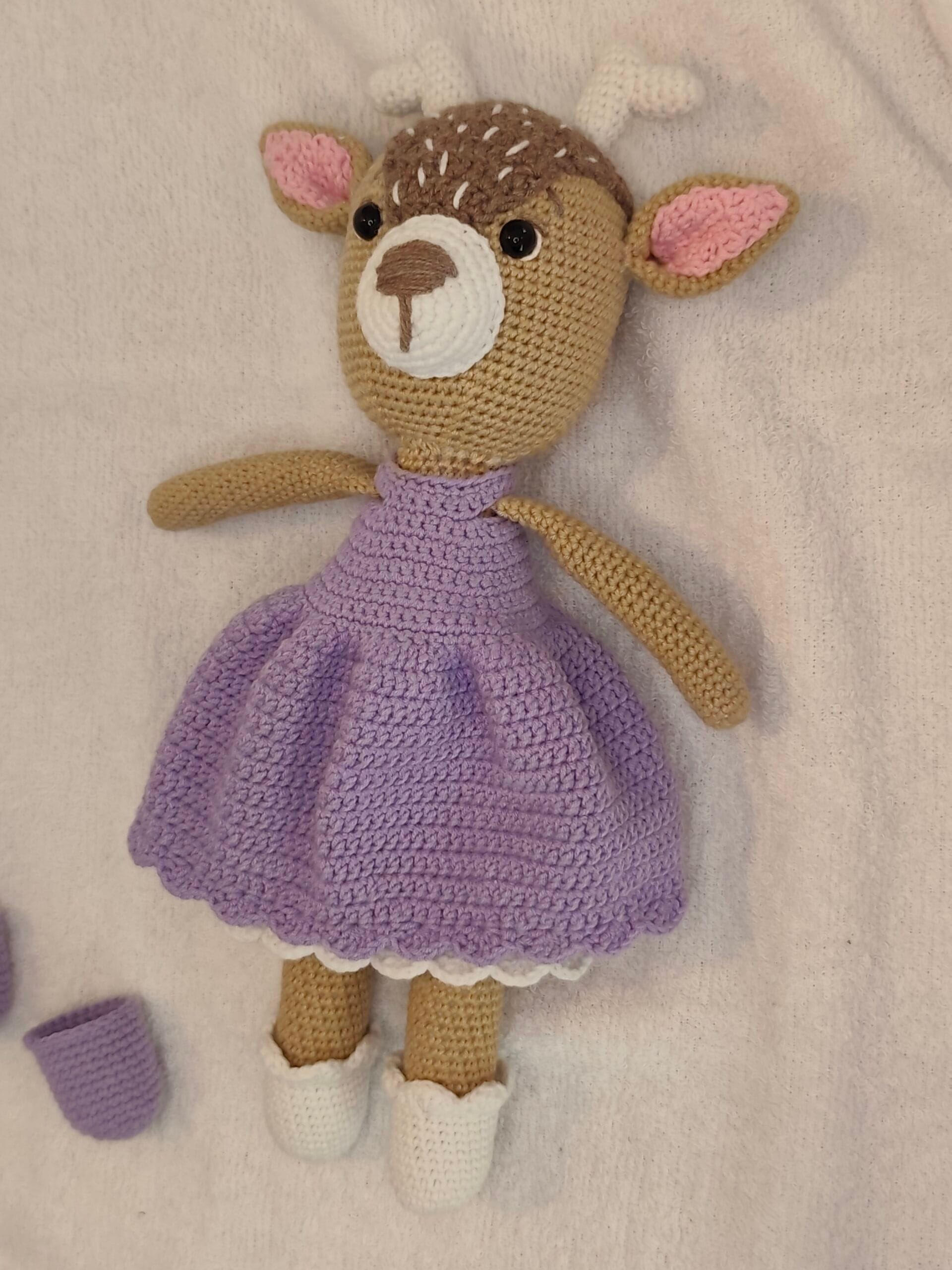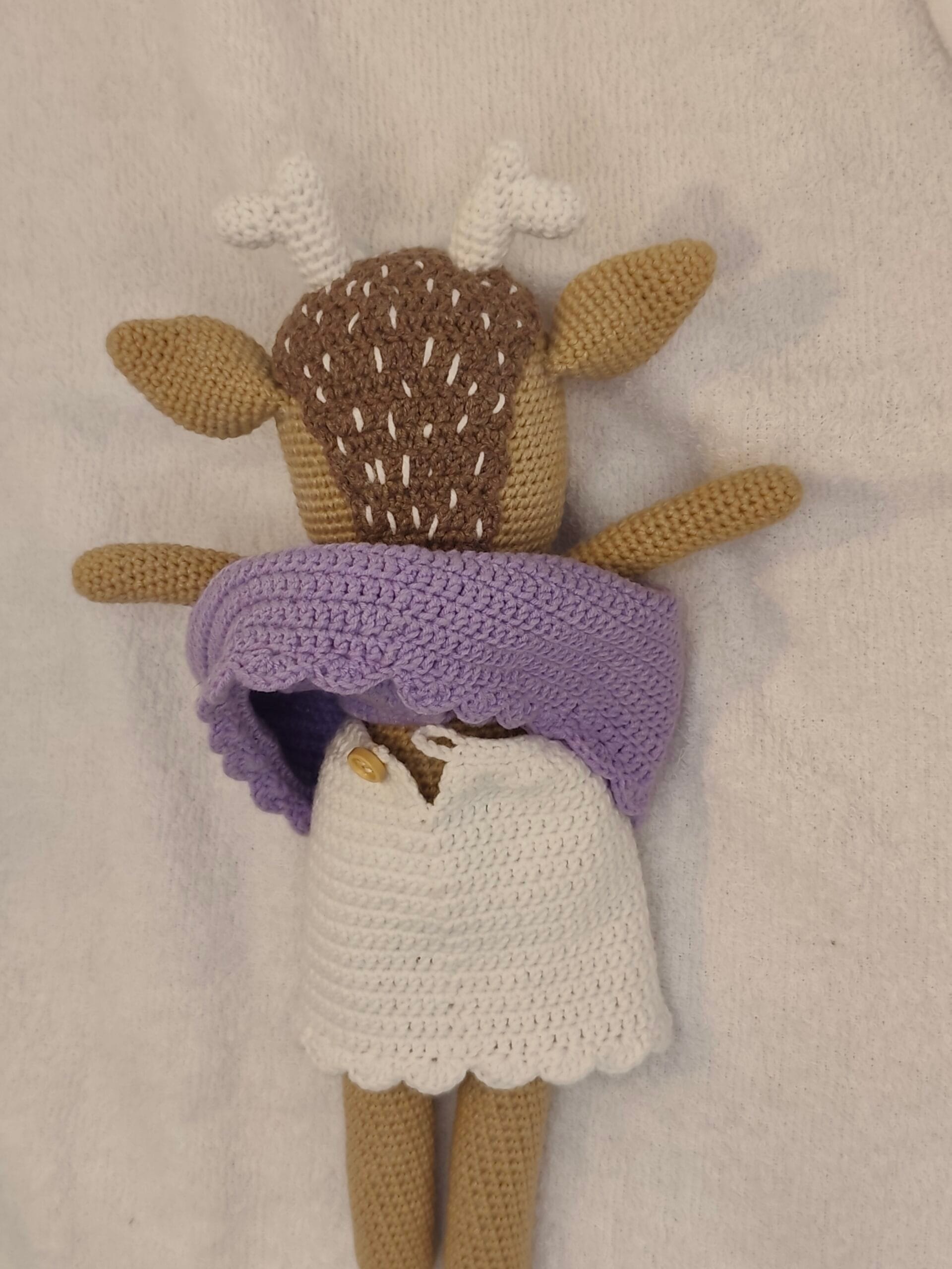 Umetnost u svakom bodu: Ručno heklana srna u ljubičastoj haljini