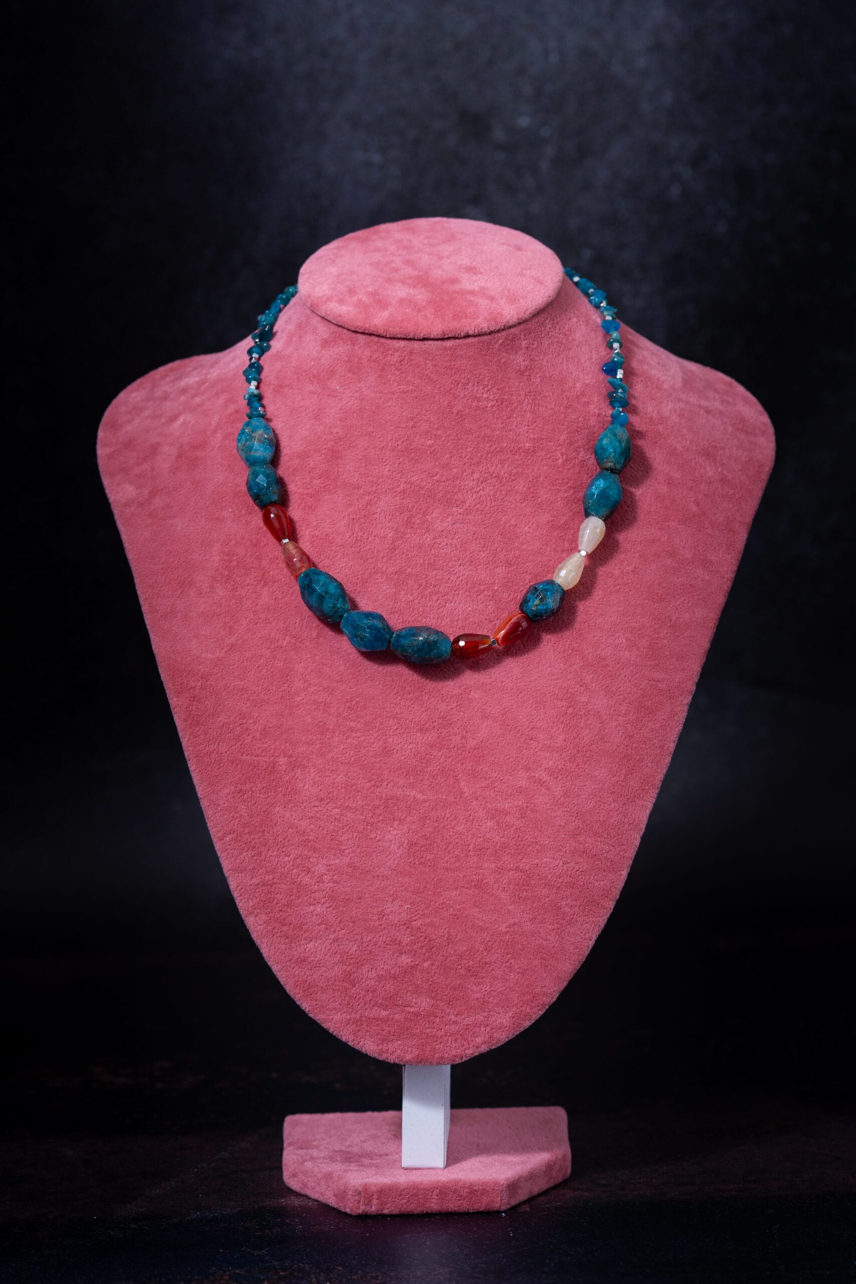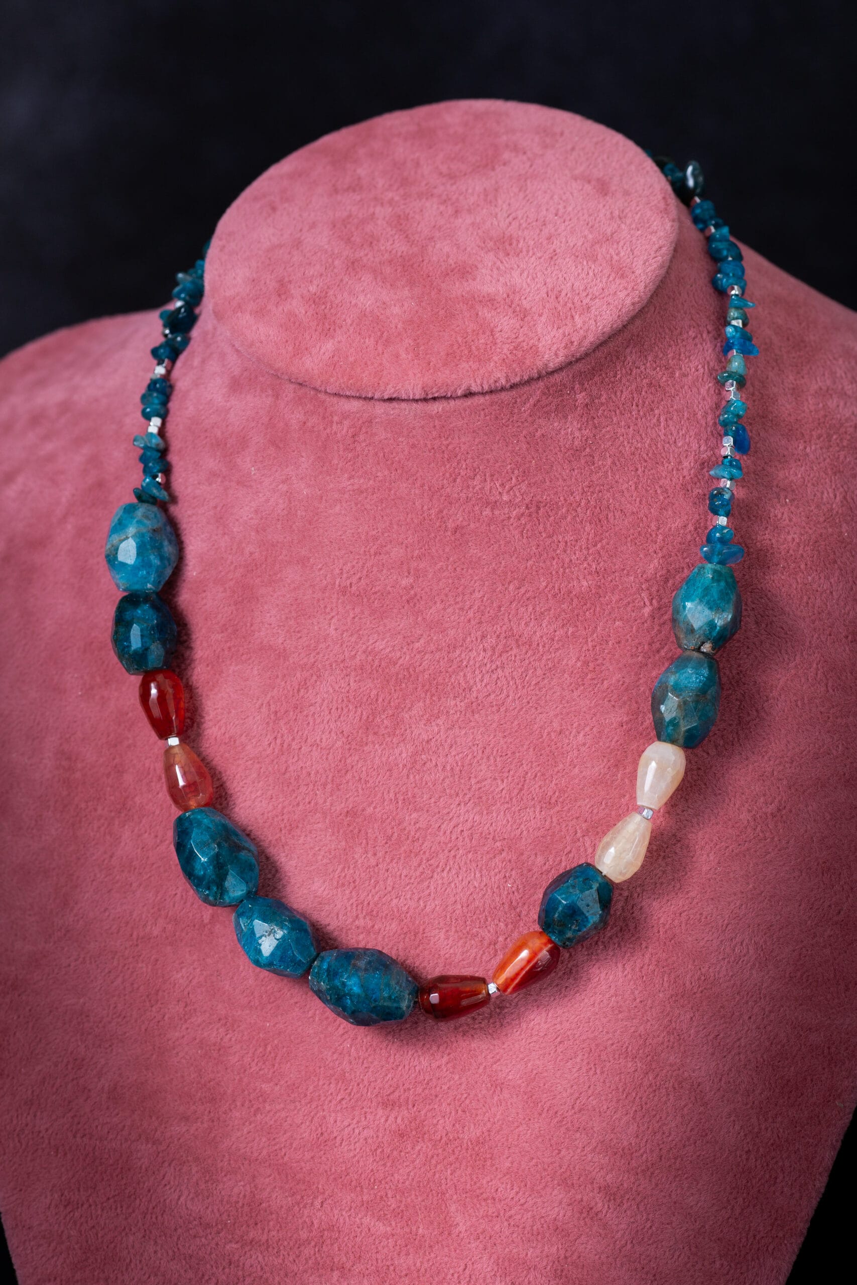 Ogrlica od apatita i ahata, za lakšu komunikaciju, otvorenost, jasne misli i balans….ili prosto jer ovo kamenje ima tako prelepe boje…