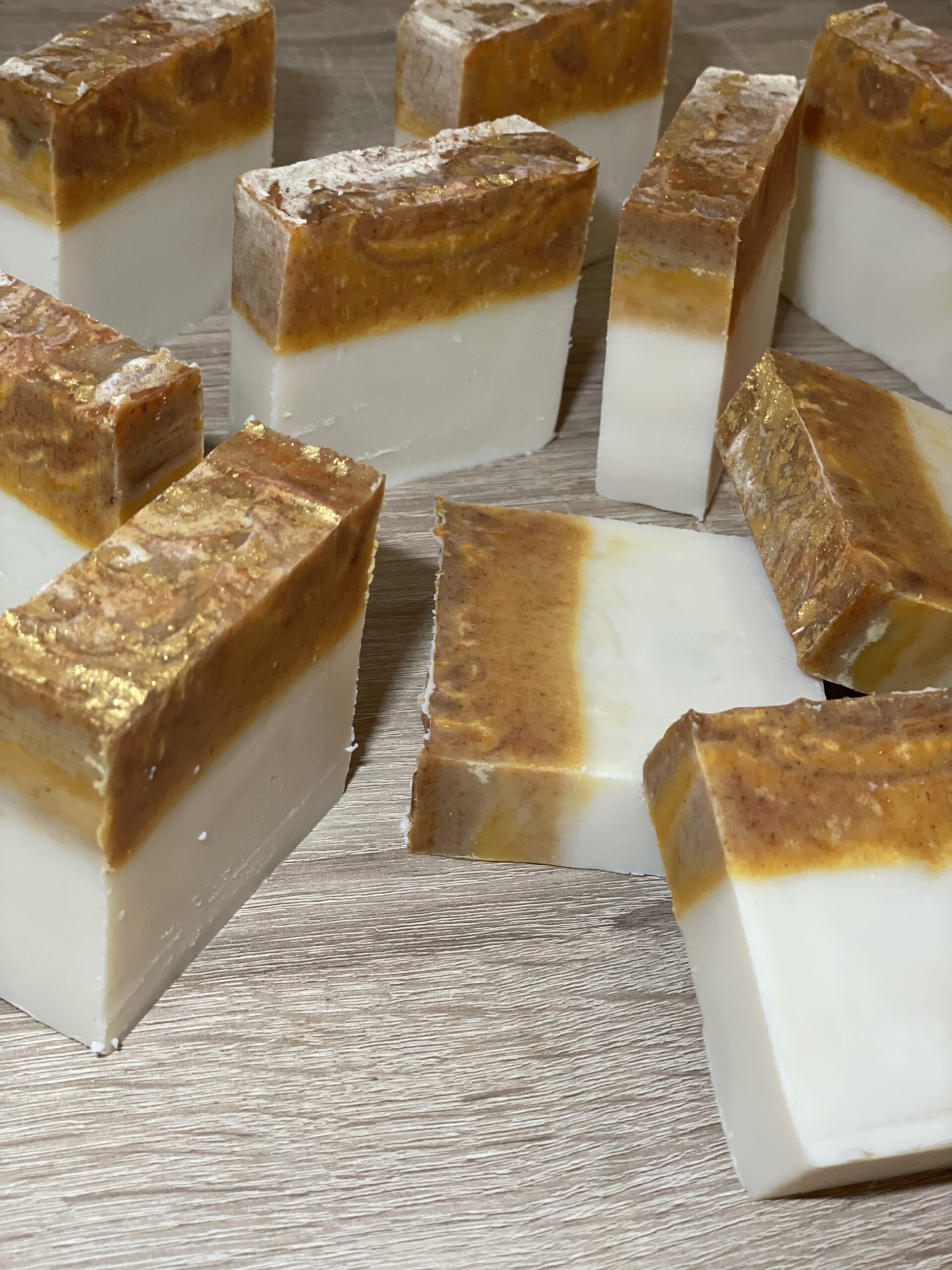 Ručno rađen sapun hladnim postupkom, obogaćen kurkumom, biljkom poznatom po svom negujućem i revitalizujućem delovanju na kožu.