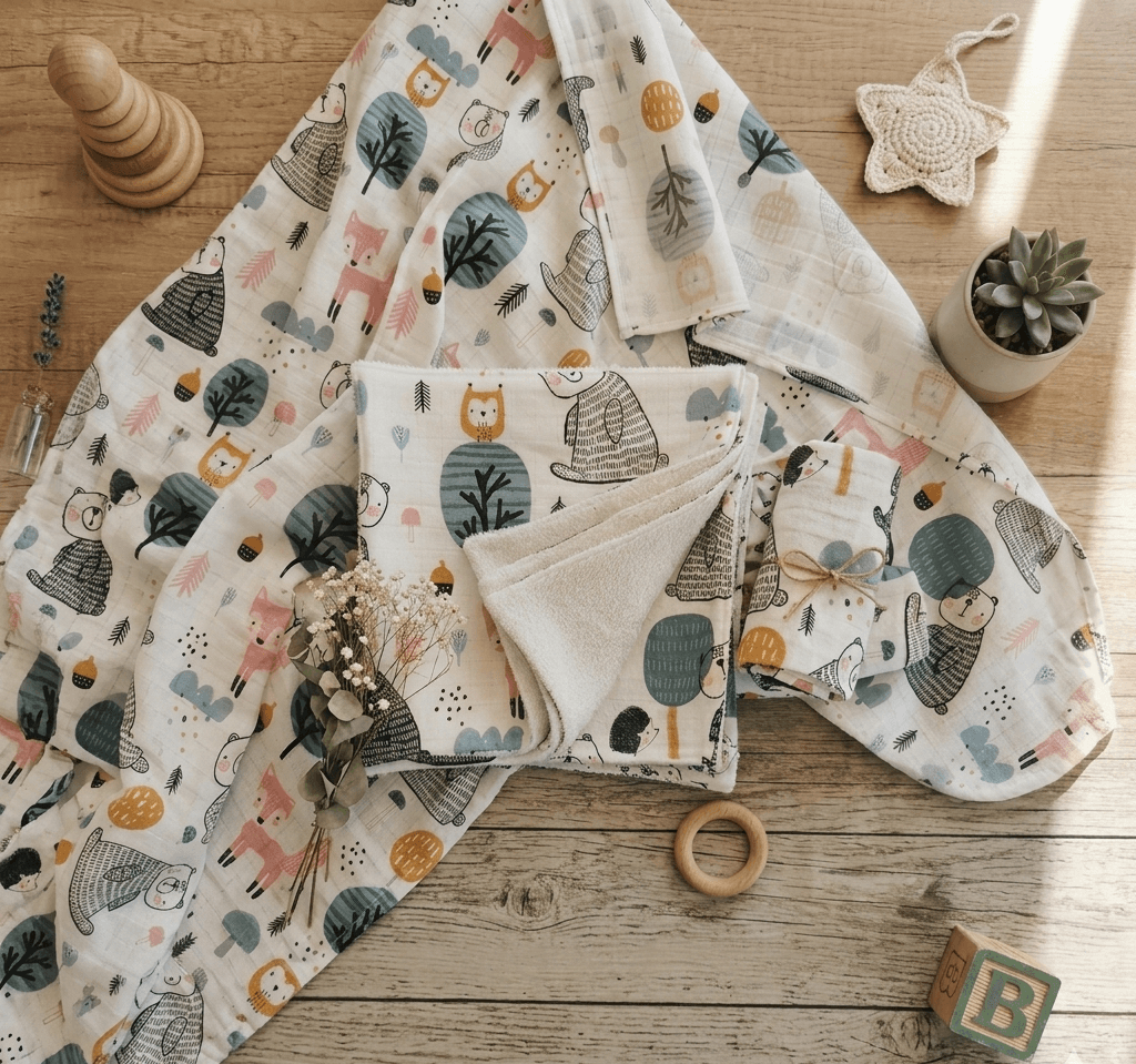 Nežni set za bebe sa preslatkim šumskim motivima donosi toplinu, udobnost i sigurnost od prvog dana. Napravljen od prirodnih, mekanih materijala prijatnih za osetljivu bebinu kožu, ovaj set je savršen za spavanje, maženje i svakodnevne trenutke nežnosti.